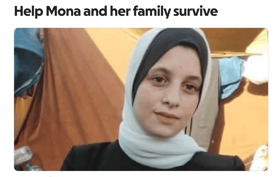 It’s my firm belief that because we are funding the destruction of Palestinian life with both our tax dollars and our consumer dollars, it’s our responsibility to move resources as often as possible from the imperial core to Gaza, to keep Palestinians alive. If you have the means to help Mona and her family today, you might be the difference between their suffering and their survival.