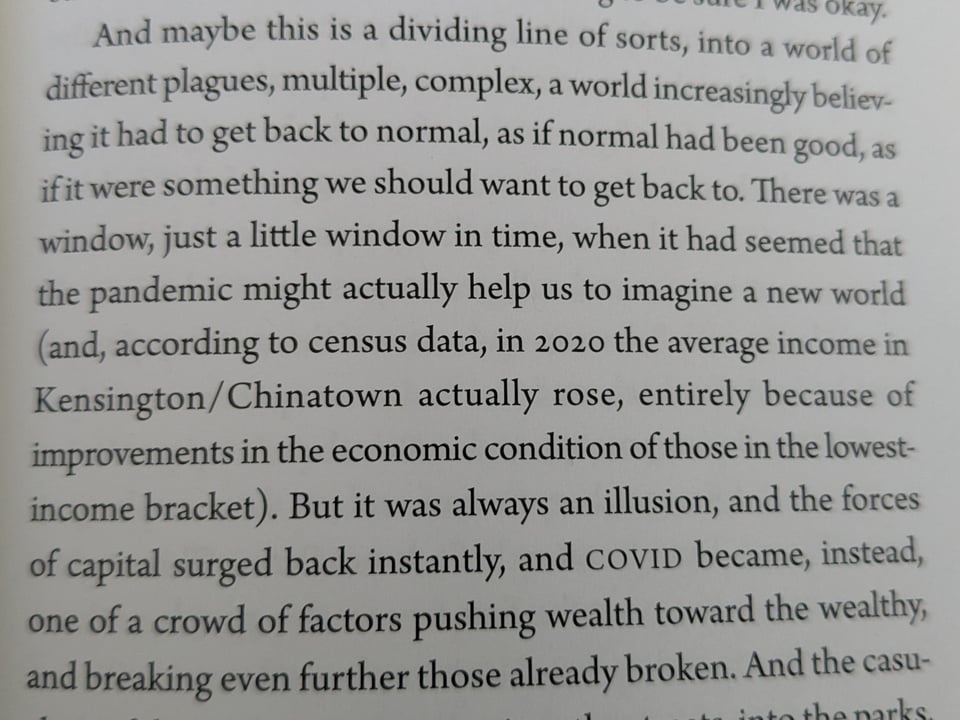 The actual review will be in Spacing soonish — I don’t have a formal issue date yet — but wanted to add in a few quiet notes that won’t make it to press with a 500-word limit in play. With everything recounted in this book — the unhoused and precarious people of Kensington, a slice of queer Toronto, navigating crisis lines for people too in crisis to do it themselves — also being pieces of my own communities, it was an emotional and slightly harrowing read. Five years in, it’s actively healing, but when I see something as foundationally sane as this, even on a relatively good day there is still a seam of moral injury in the body that cracks open wide, wanting to absolutely scream like it just scented water, and so it can safely admit just how thirsty it is.