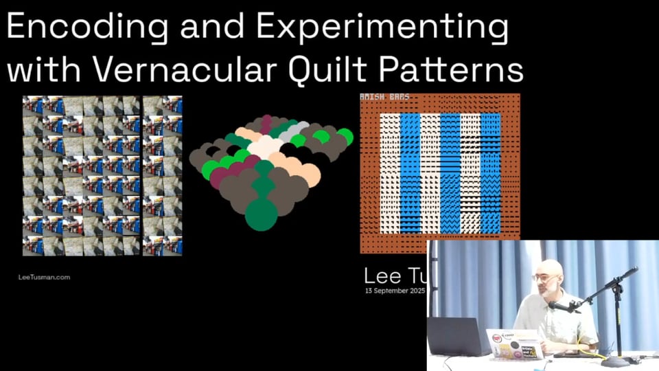 Last month I traveled to the UK to speak at the Algorithmic Pattern Salon. My talk Encoding and Experimenting with Vernacular Quilt Patterns is online.