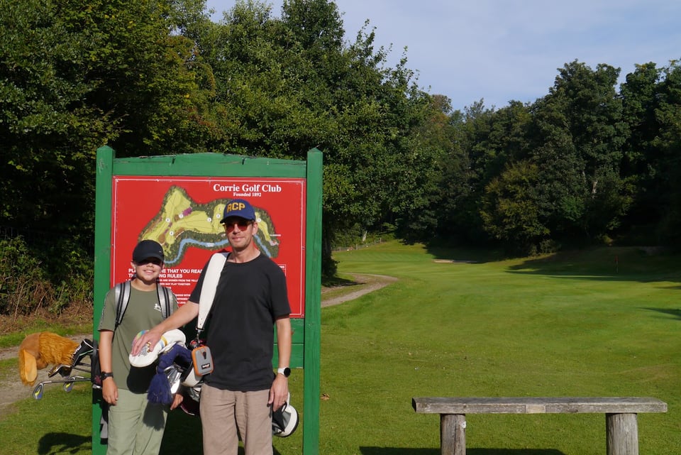 Only staying four nights, and with an increasing non-golf family-holiday itinerary, we managed to slot in nine sunrise holes at Corrie on our first morning. We had the place to ourselves, paying £22 for both me and my son at the cute wee honesty box card reader, which turned out to be extremely fun. And useful.