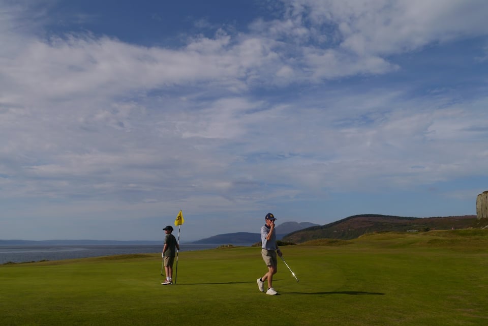 “As a golf noob/normal person, this is by far the best course I've been present at so far. As a spectator it ticked my boxes: sun, sand, scenery, drama, cliffs, geology, wildlife, seclusion, and shortish. On the edge of the island/world, right down in the bottom left corner [of Arran], 12 holes is a far more reasonable ask than 18. Who has the time for that?”