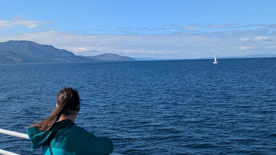 A Scottish guy I caddied for at JCB, on my last day before holiday, told me to book the ferry from Troon toot suite, which I’d been bumping in my to-do list. Douglas also mentioned the greenkeeper at Shiskine, Stewart Fotheringham, who basically lives there, eats his meals there, is always on it. Fair fucks to him – it's stunningly well kept. More on that later. Douglas tipped well, being Scottish, and also told me about Corrie. Maybe Lamlash too but that flew over my head at the time. The views alone from both courses are worth the price of admission, I was assured. He was dead right.