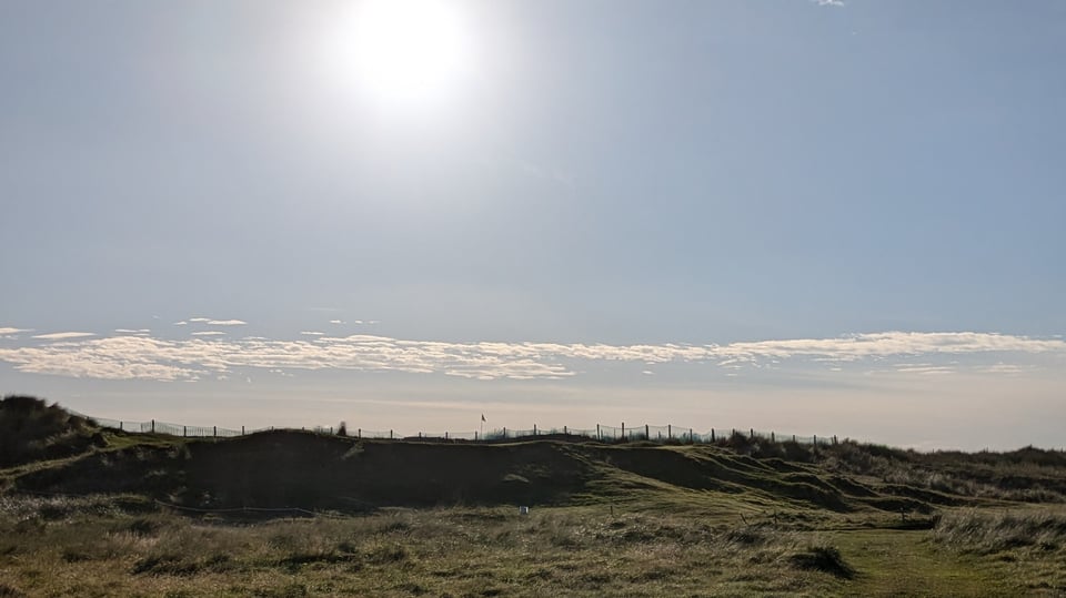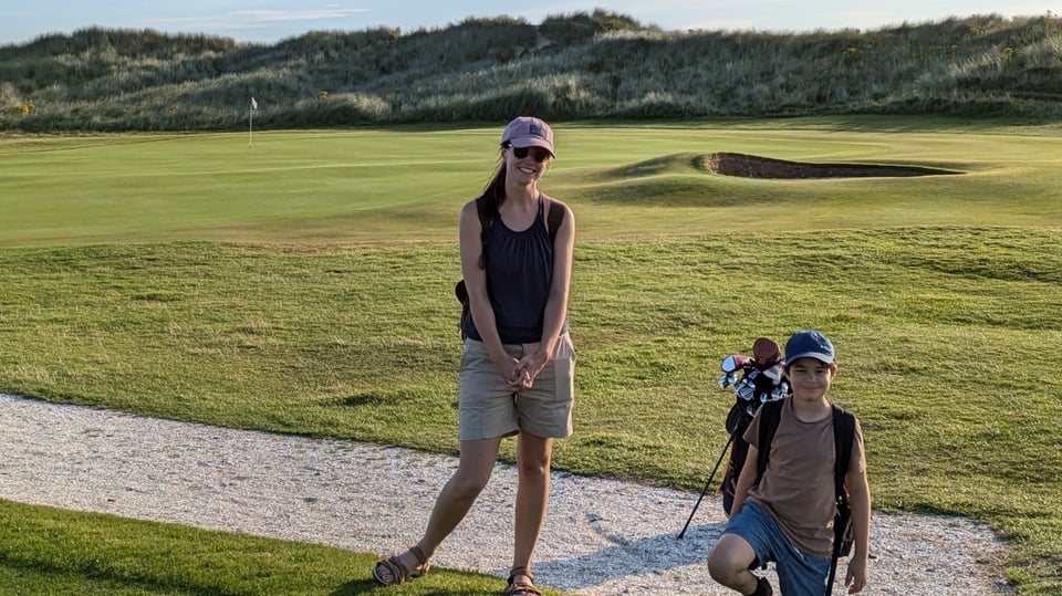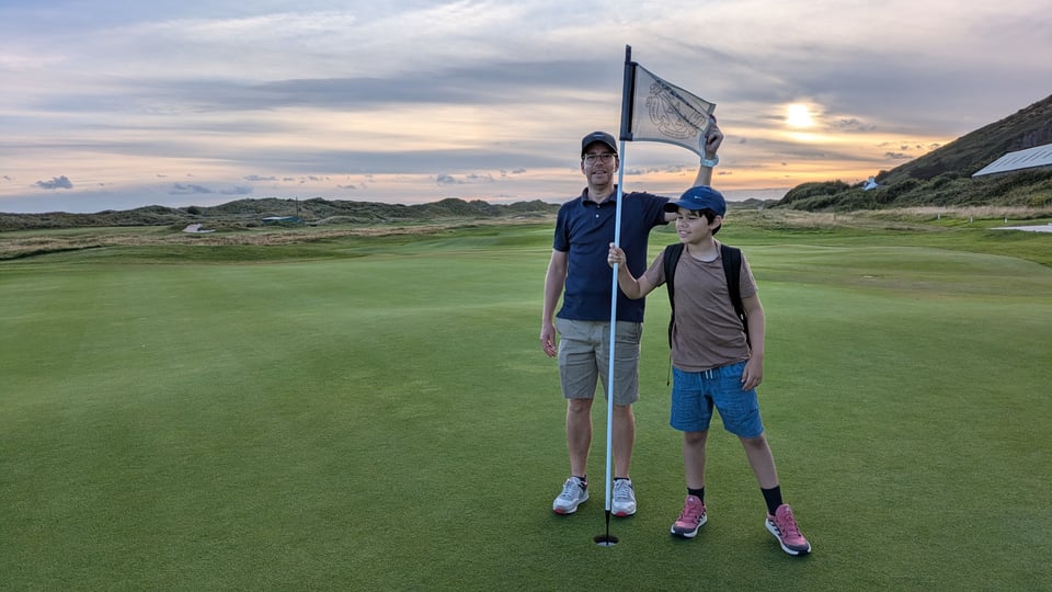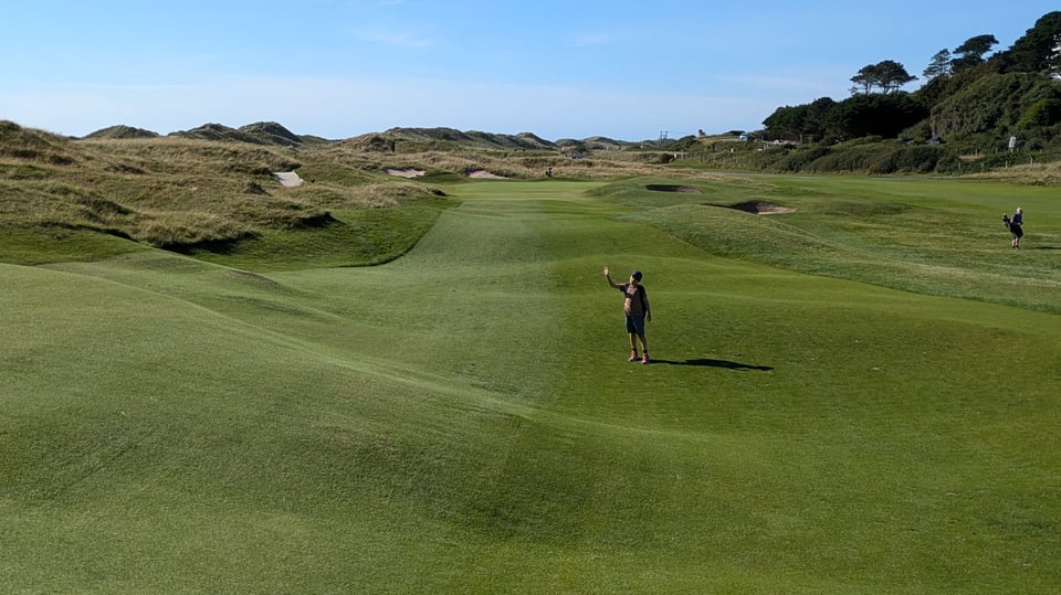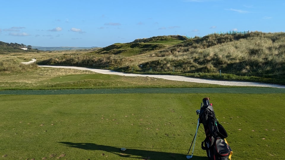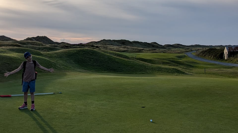 I asked Fraser whether the greens were quick but I think he was still pissed off that we weren't getting the buggy I’d booked for him. Given we could all walk the course and they would both likely get bored and disappear over the dunes to the beach, it seemed a waste. I always want to walk the course – unless mandatory, buggies are really only for holiday golf, youtubers, and the infirm. On hearing this news, Fraser gleefully disclosed to Ally how much I’d spent in the pro shop (a beauty of a driver headcover, standard memento ball marker, emergency balls).