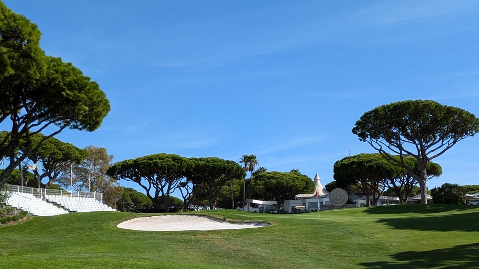 Quinta has three courses – North, South, Laranjal. Vale do Lobo two – Royal and Ocean. I’d done QdL North and both VdL’s before. I was very happy to do them again. Vale do Lobo is super fun and has some incredible vistas next to the sea, including a famous par 3 which you play over the cliffs with a big carry. In 2022, I hooked one down the cliffs and probably made at least a double. Last year I pitched the green, unbeknown to me in the fading light, with a 2-wood, missed the makeable birdie putt and made par. VdL also has the best spike bar and restaurant I’ve had the pleasure of, 18th grandstand and putting green in full view.