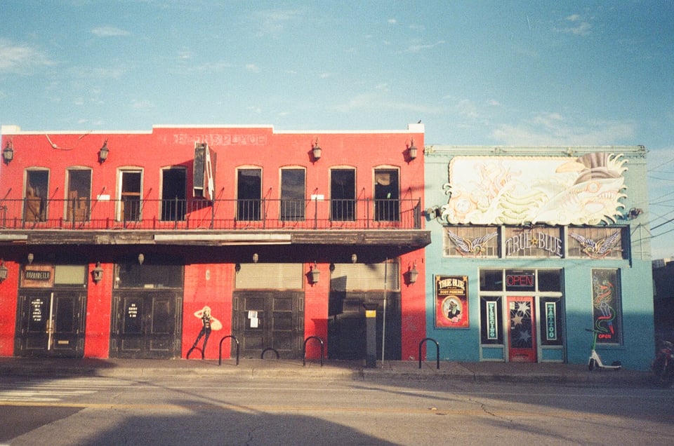 Six photos from Austin, Texas, site of the aforementioned archive and also a place with an array of distinctive looking, often single-storey bungalow-type buildings. Plus taco stands and Big Dan’s Weed Van.