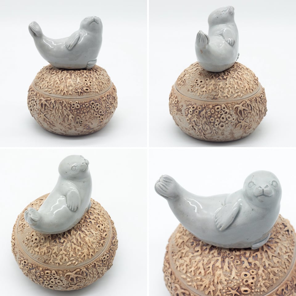 I have a lidded vessel featuring a seal hauling out on a rock (I really like how the bladderwrack came out)