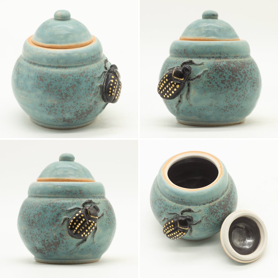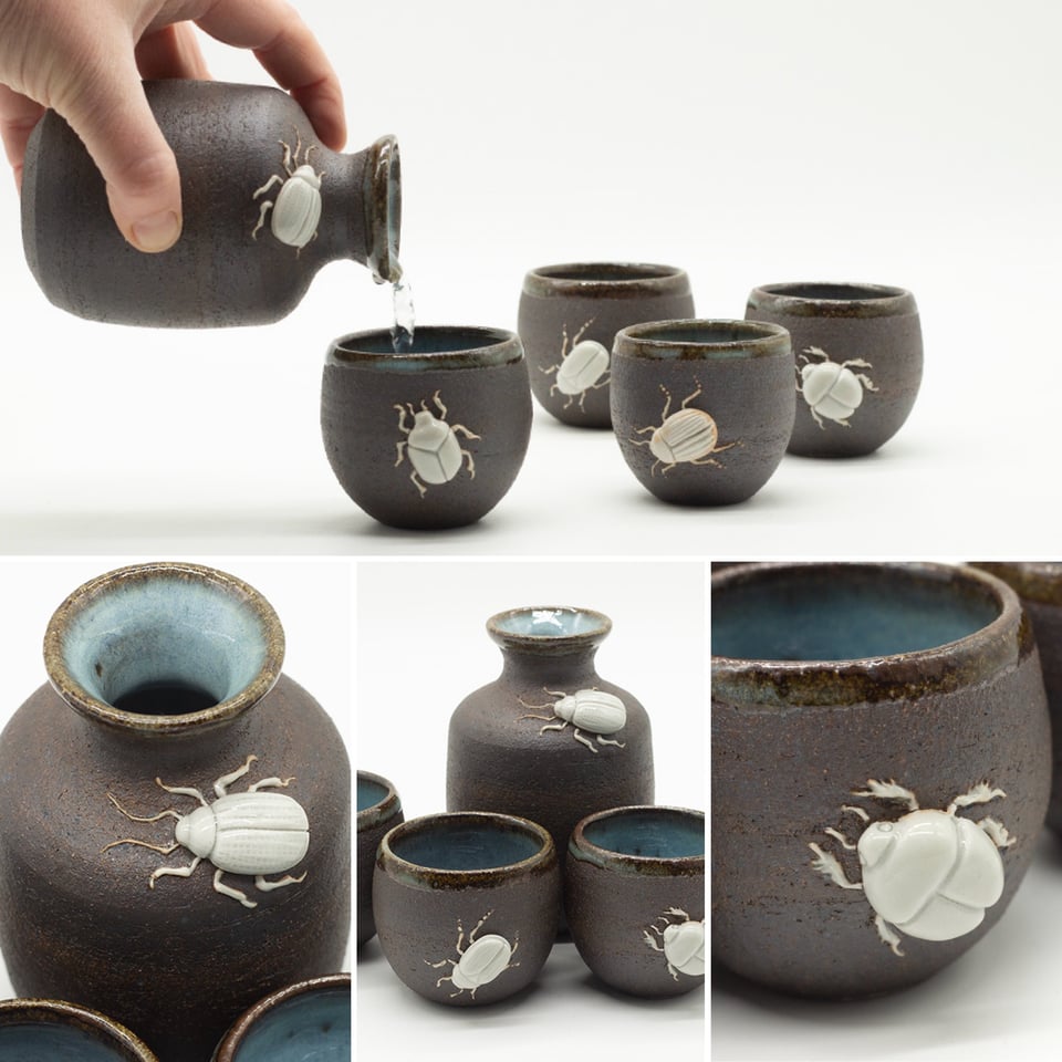 I’ve made a beetle carafe and four cups for sharing sake, mezcal, or whatever you like…