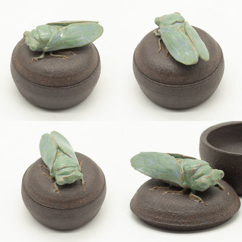 I’m happy with how these all turned out, but the cicada may be favorite from this batch, just because it’s something that I’ve wanted to sculpt for ages but never have until now. I loved the summer cicadas as a kid in the midwest. I would collect their ghostly translucent shells and stick them to my shirt like the fanciest brooch of a forest gnome. The cicadas I grew up with aren’t the red-eyed variety that we hear about emerging in huge broods to scream en mass, these are the chunky green ones who return every year to sing at a much more reasonable decibel in the evenings between school years. Obviously I’m biased, but I find them much cuter and more pleasant to have as neighbors. Hopefully my sculpt reflects that.