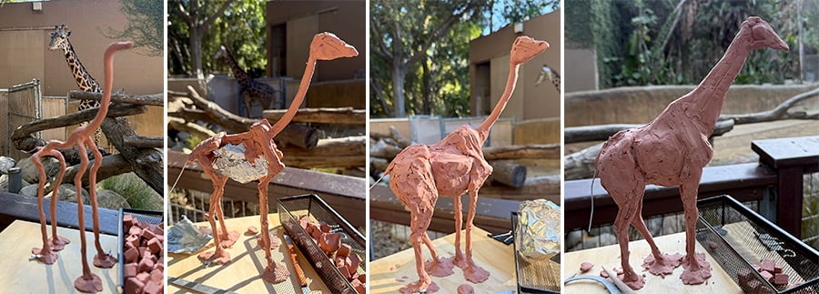 The type of sculpting that Adam teaches is so fascinating to me that I wanted to document the progress of my piece from three-dimensional stick figure to actual giraffe: