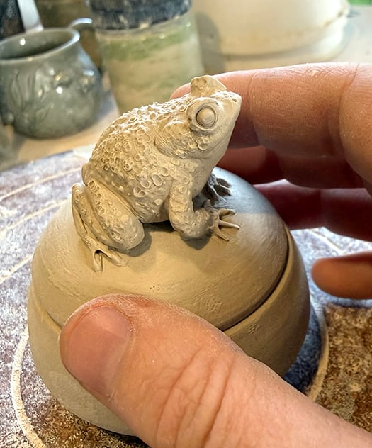 My next shop update should be a round of small boxes with frogs, cicadas, toads, newts, and other critters on the lids. I’m working on a veritable slew of them right now. A SLEW!