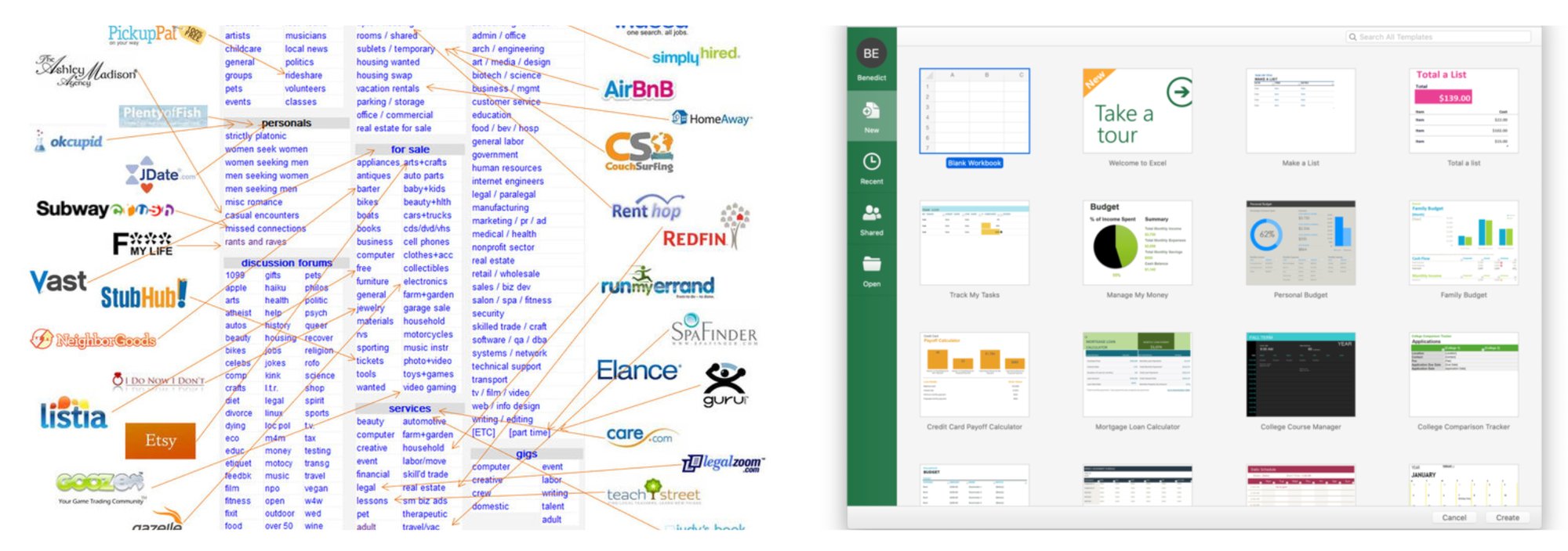 So, in 2010 Andrew Parker made a much-copied graphic showing how many startups were unbundling parts of Craigslist into dedicated vertical marketplaces. Today we’re also unbundling both LinkedIn and Excel, in the same ways and for the same reasons. There’s an old joke that every Unix function became an internet company - now every Craigslist section, or LinkedIn category, or Excel template, becomes a company as well. Depending on the problem, that might be a new collaboration canvas, or a new networked app, or a new network or marketplace, and you might switch from one form to the other. Github is a developer tool that also became a network - it became LinkedIn for developers.