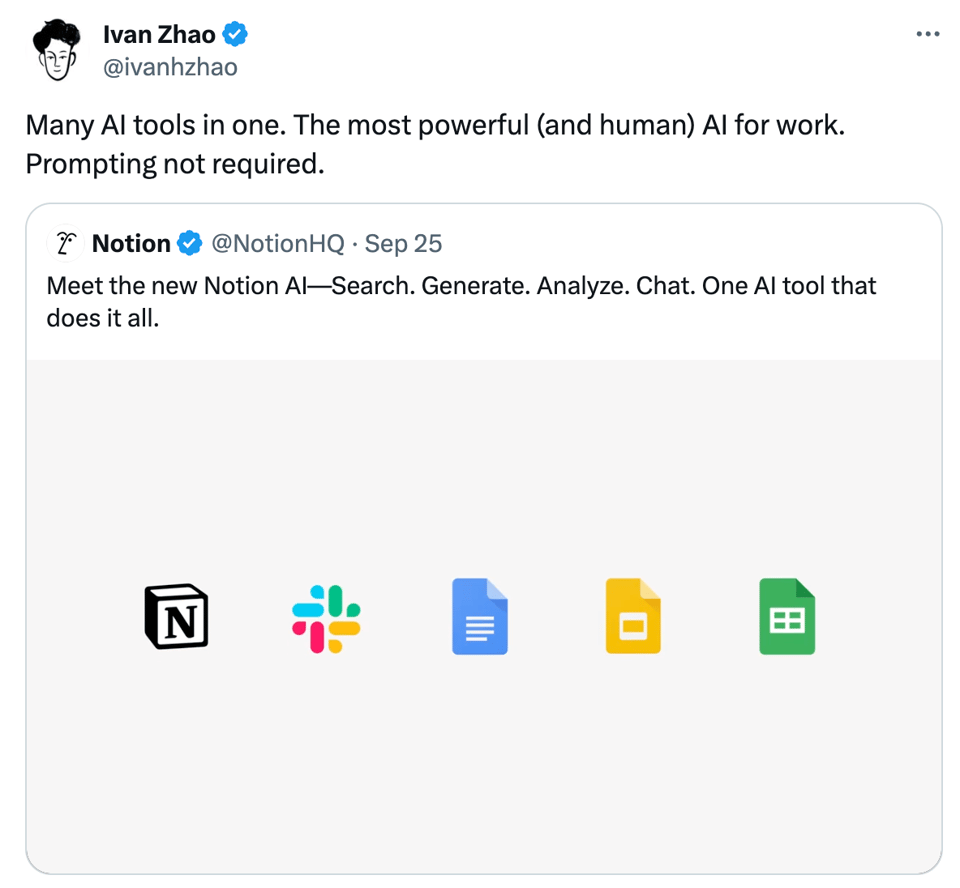Conventional wisdom says not to draw attention to competitors, but A) most of you know Notion already, and B) they launched some new AI stuff this week that is cool—but headed in a very different direction from Lex.
