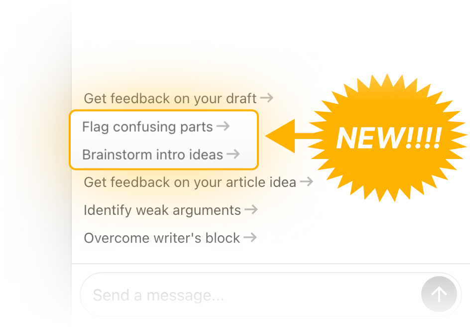 To help make sure this doesn’t happen to your writing, we just added two new prompts to Ask Lex (our chat interface that sits next to your draft) that I think you’ll find useful: