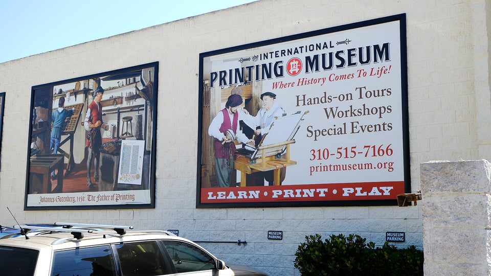 The International Printing Museum is located in a nondescript area of Los Angeles; near the intersection of the “One Ten” and the “Four oh Five” interstates. If you aren’t specifically looking for it, you’ll likely miss one of the best printing museums in the United States (if not the world) and end up in a “Floor & Decor” parking lot across the street.