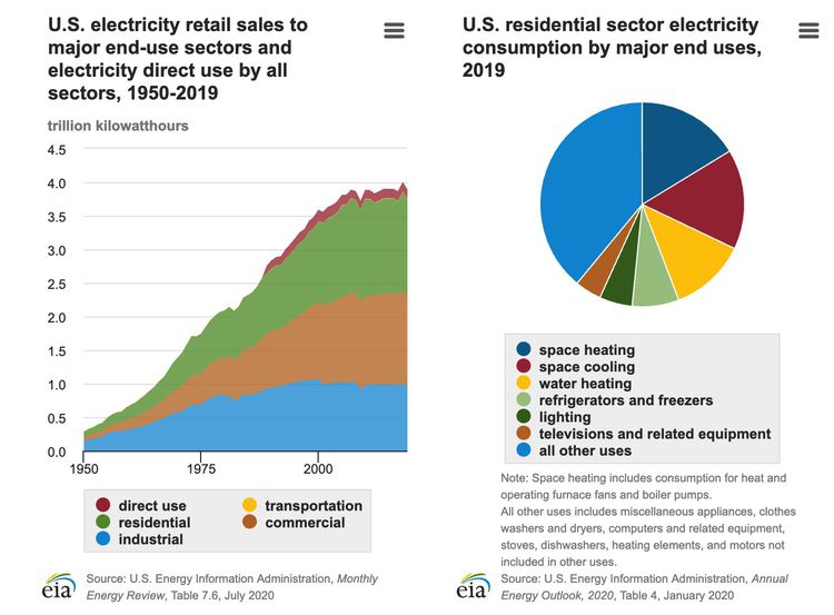 When I look at where our electricity is going in our homes, I am beginning to rethink my aversion to smart tech. So many of these end uses in our homes could be controlled to adjust for intermittency or to shave the peak load, and the peak is what matters most. Heating, cooling, and water heating are almost half our residential consumption, and many of the “other uses” like clothes dryers and fridges could be turned off at peak times.