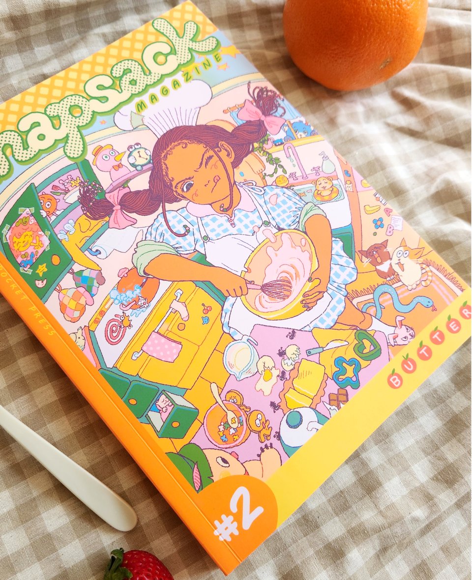 We’ve received our advance copy of Knapsack 2! We’re super happy with how it turned out, the colors are super poppy and vibrant like an old kitschy cookbook. The greens are lettucey and the reds are tomatoey, as we had hoped.. it’s our wildest vegetable dreams come true. Plus the internal poster and the postcard look super great too, we love that there’s fun stuff in this volume and can’t wait to keep adding cool magazine-y extras into following entries into the series. Here’s a sneak peek: