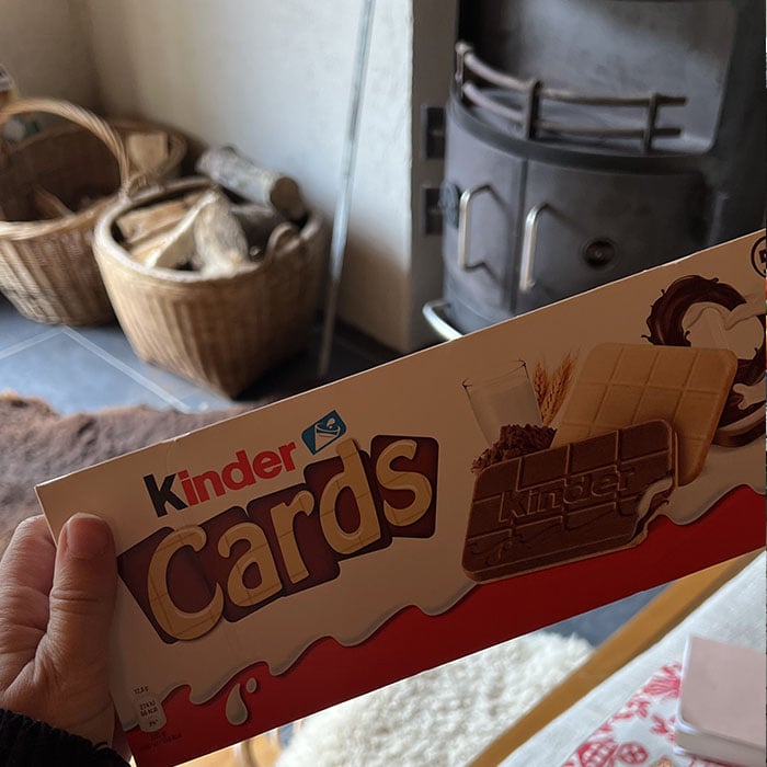Ver-slaafd. Ik kocht Kinder Cards in de Ardennen, maar zijn ook gewoon in Nederland te koop. Zó lekker!