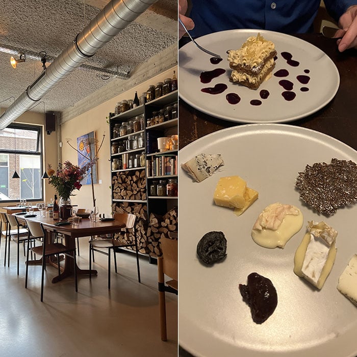 Genoten van waanzinnige, vegetarische gerechten klaargemaakt op een open vuur, natuurwijnen proeven en muziek van de platenspeler bij Restaurant Rotonde. Laatst bekroond door Michelin met een Bib Gourmand én een Green Star. Heel erg verdiend, aanrader om in Rotterdam uit eten te gaan!