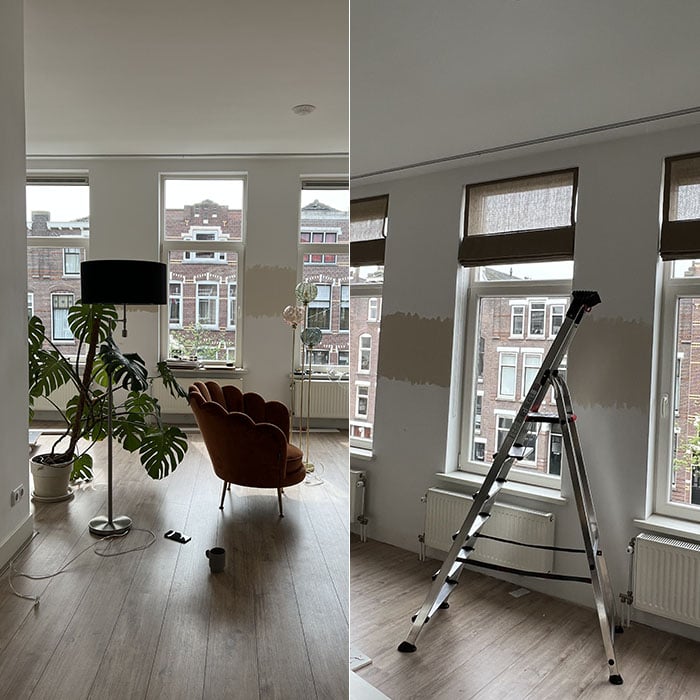 Langzaam maar zeker wordt ons nieuwe huis een thuis. Er hangen steeds meer gordijnen, en de benedenverdieping is leeggehaald voor de nieuwe vloer. En als die er ligt, wordt de focus weerlegt naar het dakterras! Hard werken, maar het resultaat is zó bevredigend.