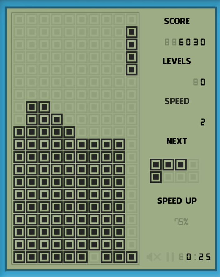 I searched the app store and avoided the official one which was laden with advertising and looked too, well, modern. I wanted something that evoked the classic Tetris feel and eventually found "Brick Game", which carefully avoided any mention of the T-word but was close enough to what I was after. I downloaded it and played for a while.