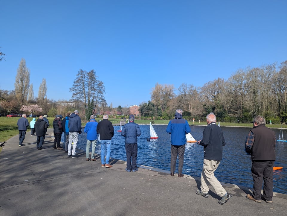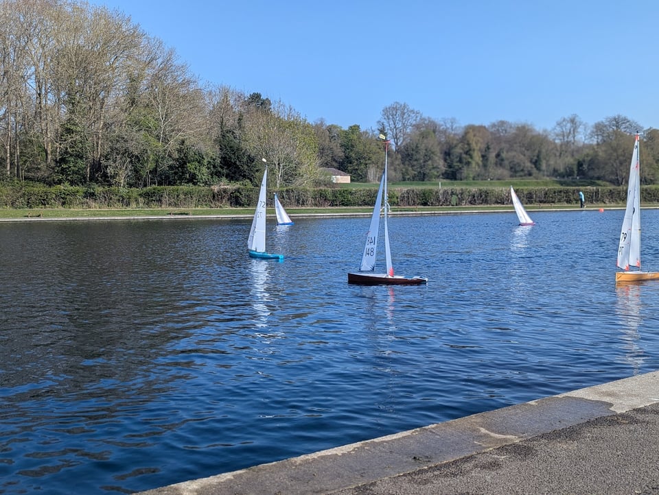 Their race began: the boats gradually drifted towards a floating marker buoy and someone’s speaker bleeped out a countdown. An flotilla of models began to drift, leaning on the wind as a gaggle of mostly-elderly men flocked after them, stiff fingers working the controls and sensible shoes stepping around the piles of goose shit2.