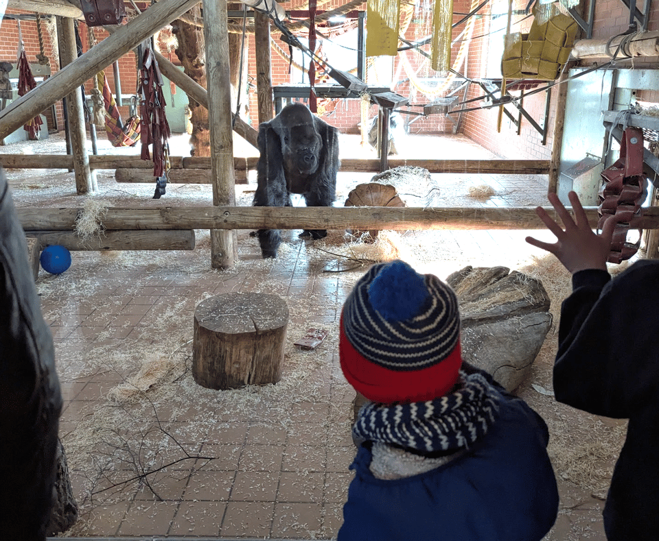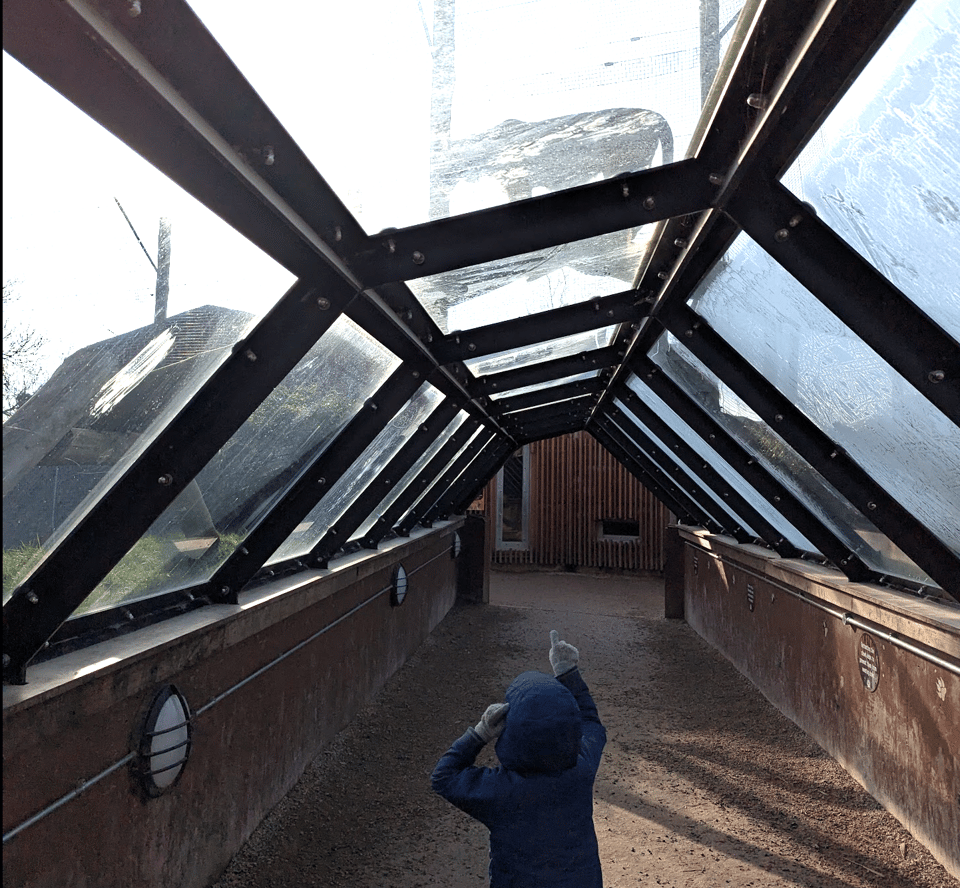 Eventually, we both come to terms with the arrangement: I let Ted entertain himself on the frozen play park for twenty minutes, in exchange for him pretending to be interested in the rhino and gorilla exhibits so I can convince myself I’ve properly visited a zoo. For a brief, exciting, moment, we’re the only people to witness the Sumatran tiger emerge from its indoor den and strut casually onto the wooden walkway atop an observation bridge, where we pose for selfies with a tiger directly above our heads. This was worth the entrance fee, I find myself thinking, before a dozen other people join us for the photo op.