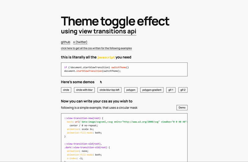 - Theme Toggle Effect using View Transitions: it is amazing the amount of things we can do here!