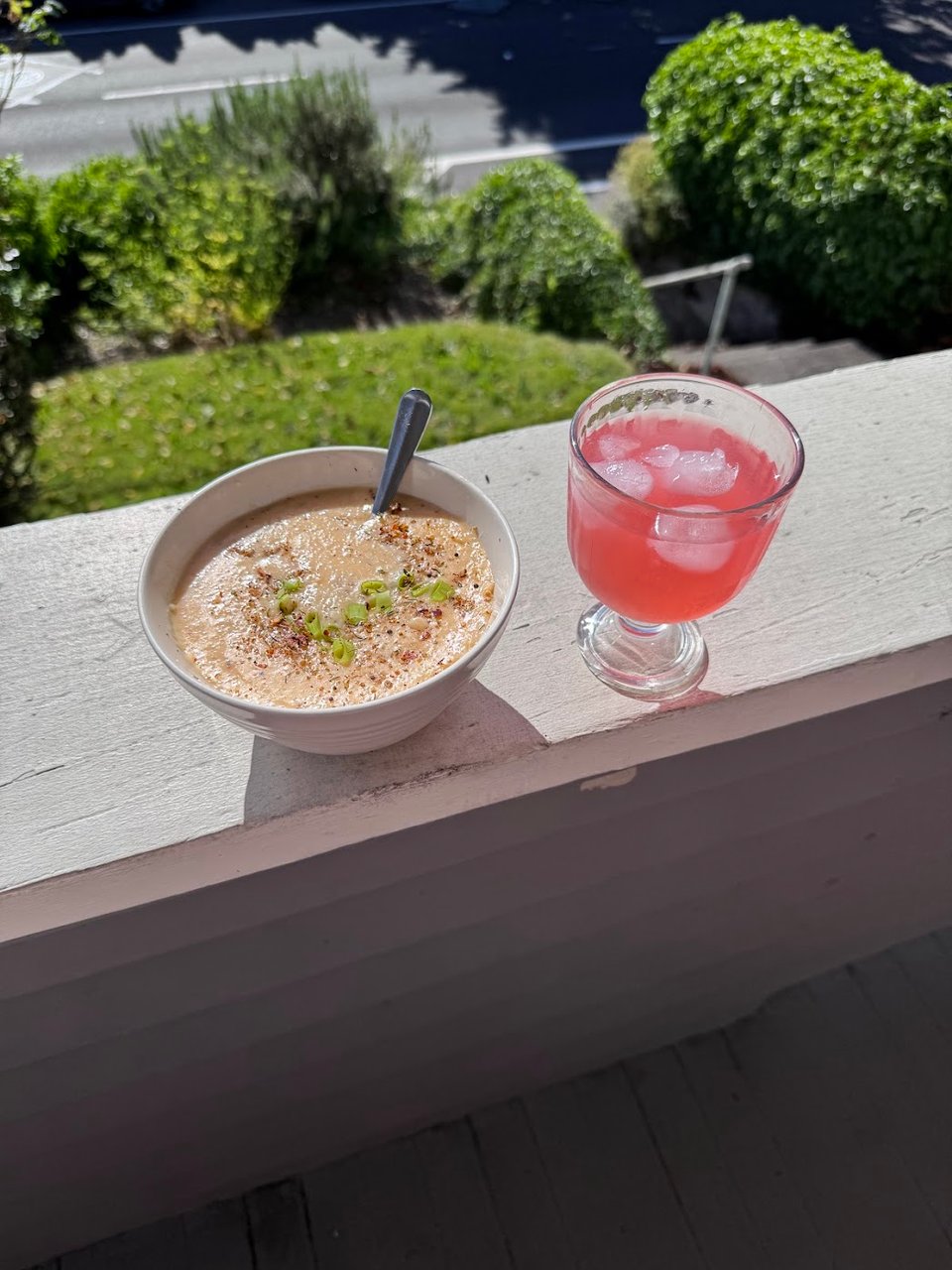 Pink drink & grits on the porch