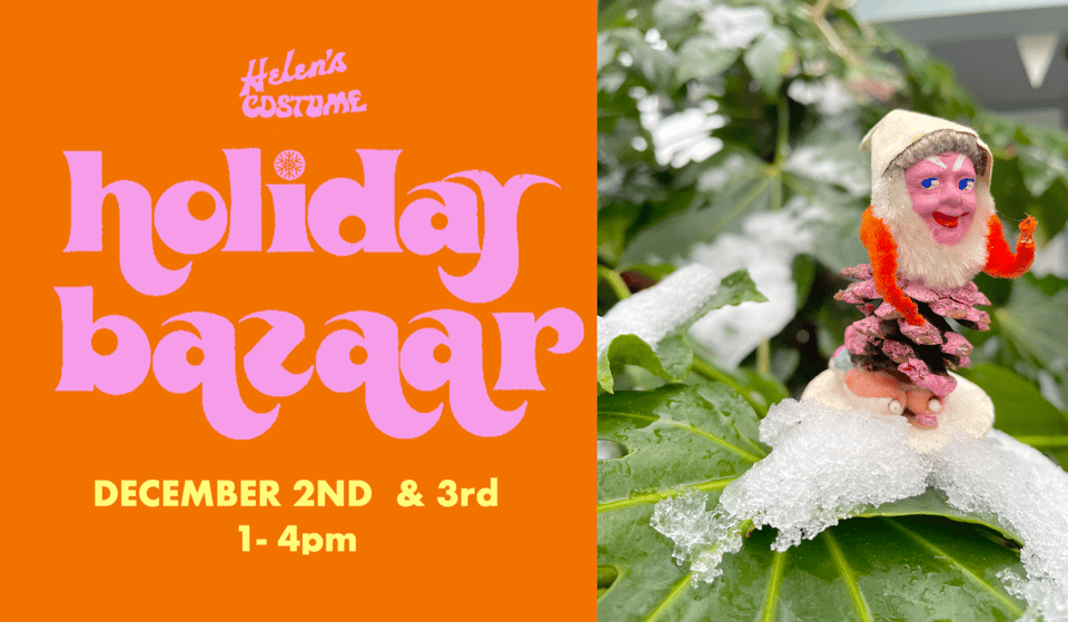 interested in adding a small art to your collection or finding a weird gift for someone cool? check out the helen's costume holiday bazaar! it's happening december 2nd and 3rd, 11-4 pm (i think this graphic has a typo in the hours), in the montavilla neighborhood of portland, and will feature work by a lot of lovely people... including meeee! haha apologies for the self promotion, but regardless of whether or not you feel like buying something, this will be a fun community event radiating with good vibes! please do pop in!