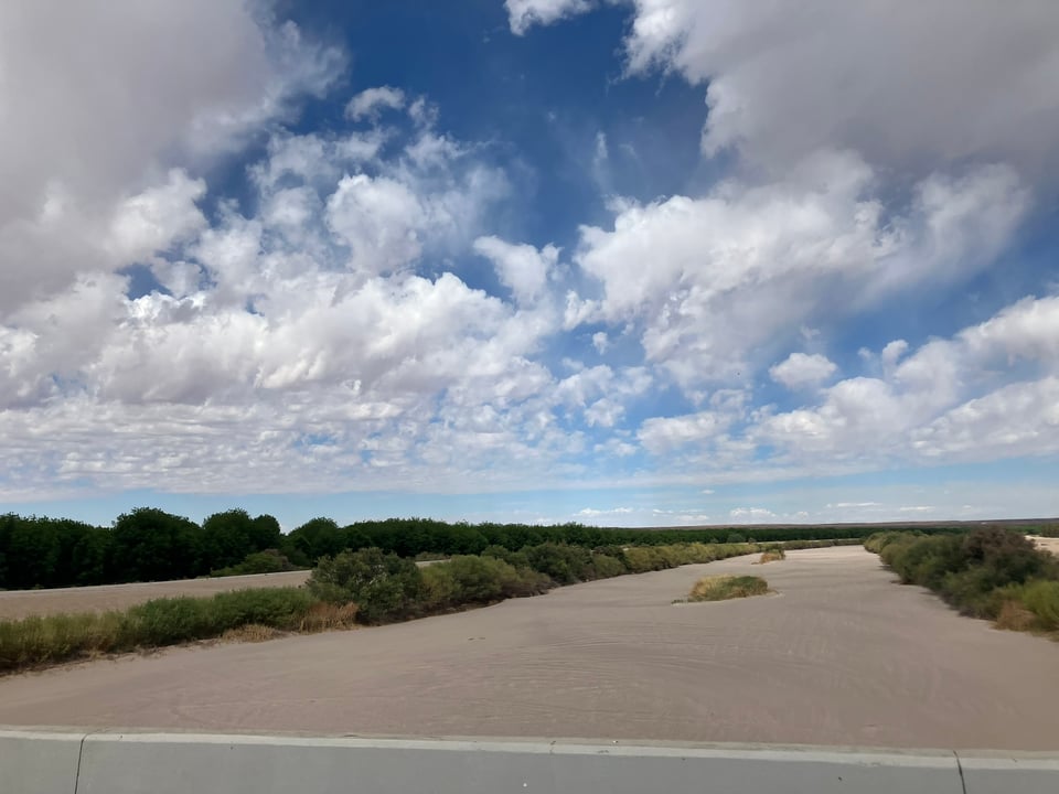 But the day of my ride the riverbed was still dry and sandy, crisscrossed by ATV tracks. Alongside the road, wells filled irrigation ditches with glistening water from the Mesilla aquifer. Farmers pump groundwater when river water isn’t available. The groundwater pumping is at the heart of a decade-long Supreme Court case. But I wasn’t thinking about that on my ride. I was appreciating the shade of the pecan trees.