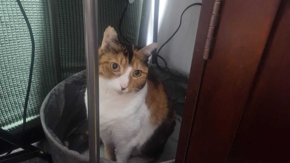 The new lamp is only 1 shelf but it’s larger and the light shines wider and brighter for the entire surrounding area. Also, there’s a little bucket at the bottom where Zenny could sit if she wanted to (she has only three times). When the old lamp was there, she would poke around and try to find somewhere to sit and then give up because there wasn’t room for her.