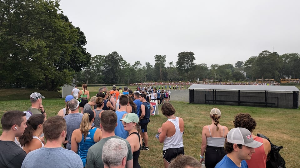 The morning of, we got up early (spoiler: almost not early enough) to drive from Providence to Falmouth. Asics had a shuttle and police escort from their HQ in Boston to the race, but since we weren’t staying in Boston, we were on our own. Traffic for 90% of the trip was nonexistent, but Falmouth being tiny, the traffic to get to the race shuttles was intense. In retrospect, when we were 2 miles out I should have just gotten out and walked/ran to the buses.