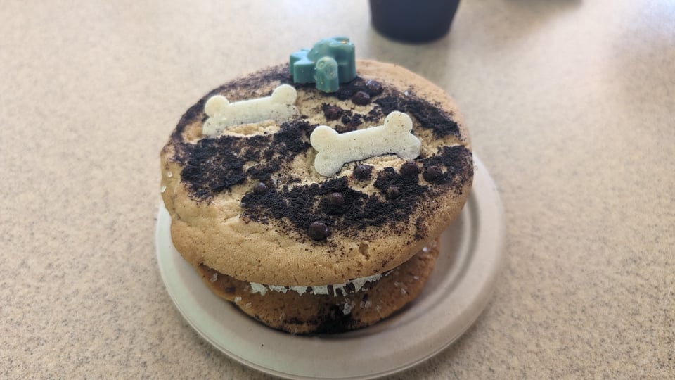 Meeting up with the family, we strolled through the park, enjoying the sights and sounds while making our way to Dino-Land because (a) the lad likes dinosaurs, and (b) I had a great need for a sandwich of ice cream between two giant cookies.