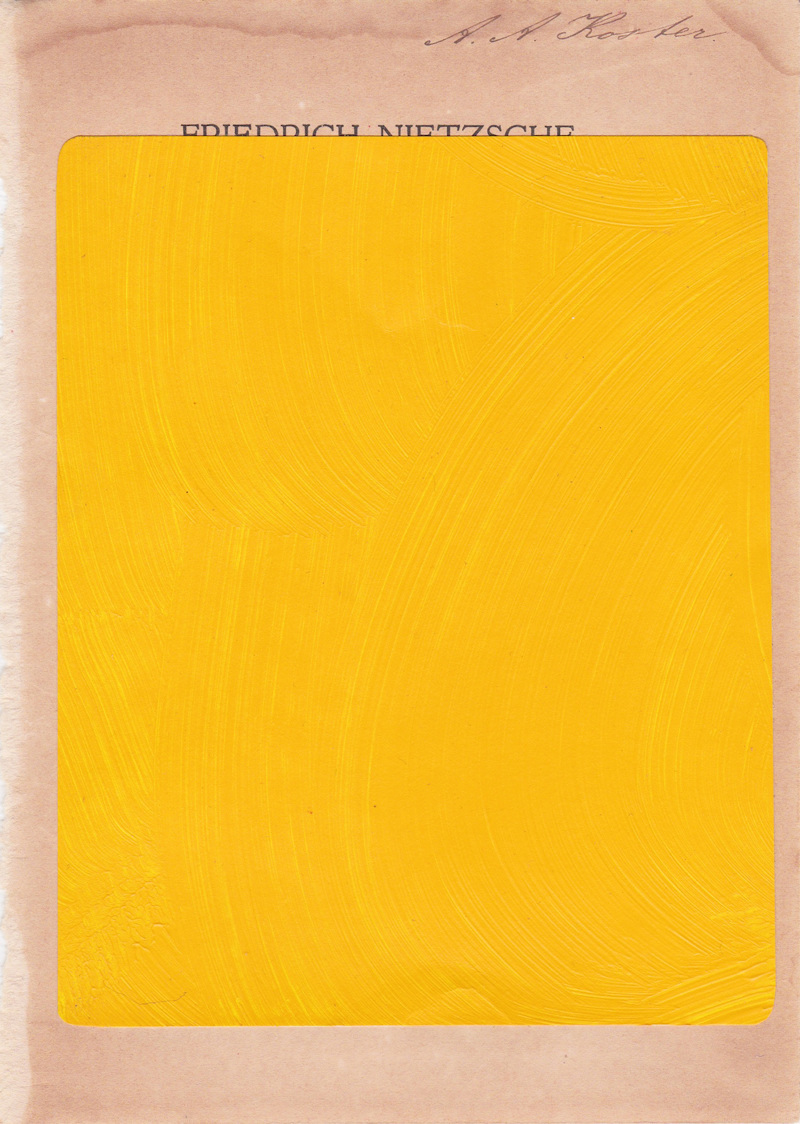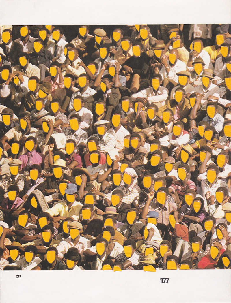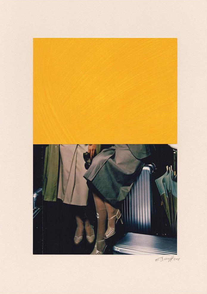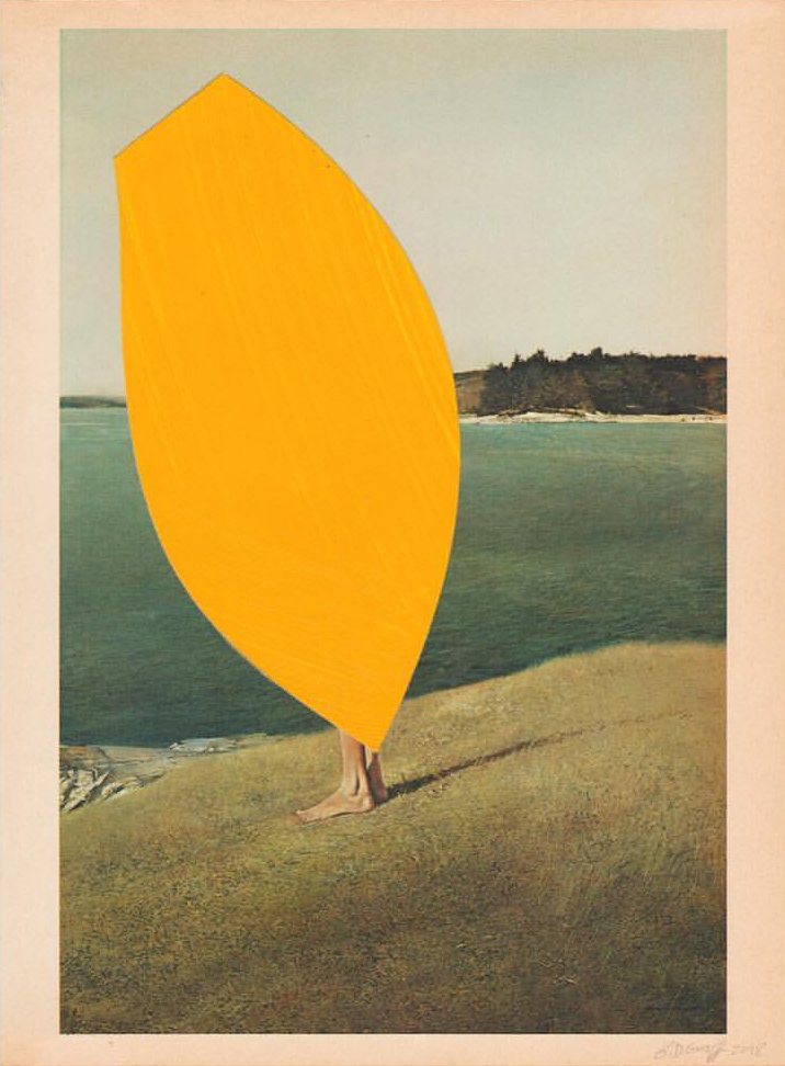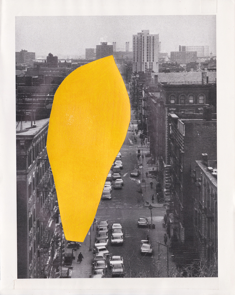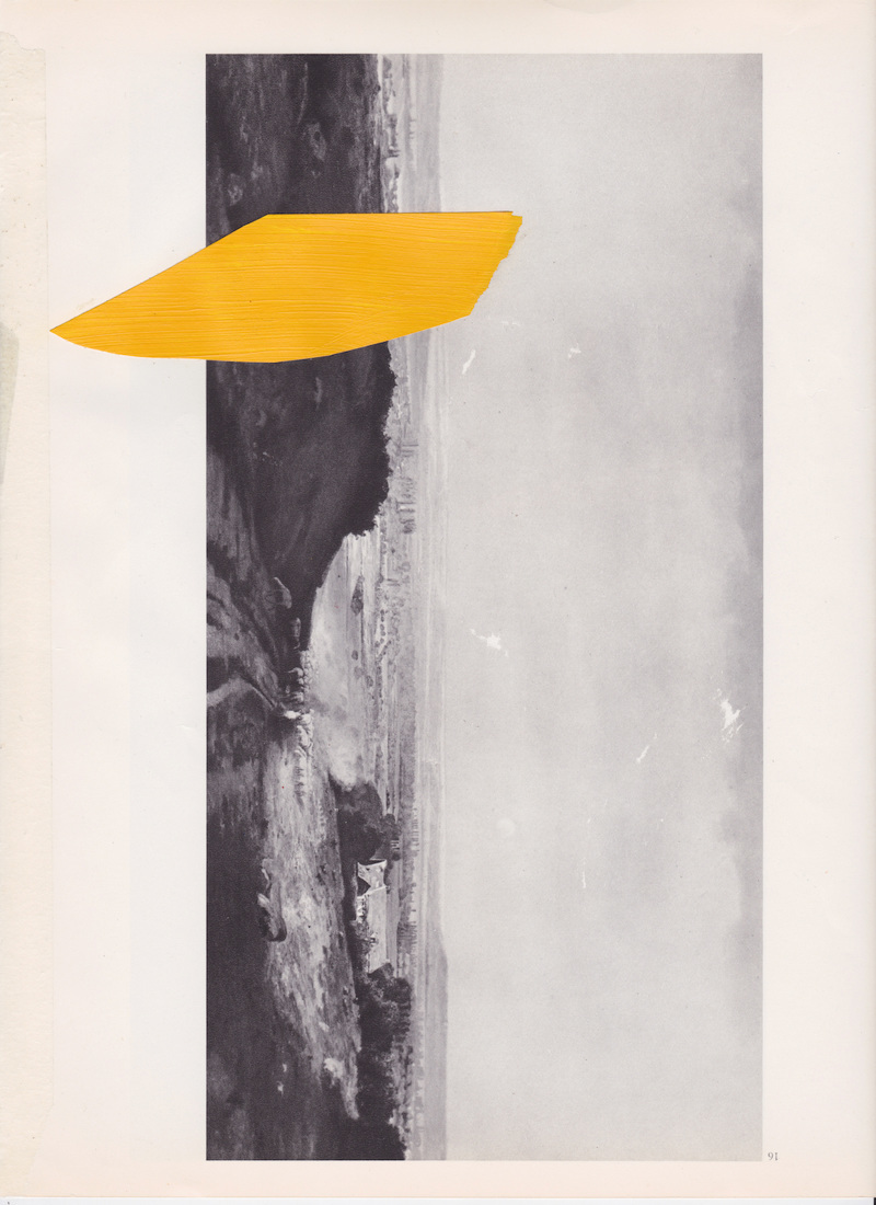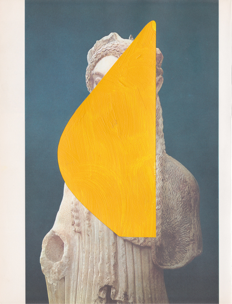 I keep returning to this WePresent post from a few years ago – Is it mine if I add some yellow? – that features the work of Dutch artist B. D. Graft, who has … well, he’s added some yellow. It raises interesting questions about artistic ownership, copyright and the concept of culture-as-collage; issues increasingly on my mind, the further I delve into using and adapting found images in my own work. Take this first piece: who/where is its author? Is it the sculptor? The photographer that shot the sculpture? The publisher of the book containing the photograph of the sculpture? Or the artist who placed a bit of yellow over the page of the book with the photograph of the sculpture? Does any of it matter as long as I get to look at nice big blobs of that very particular shade of of almost-orange yellow that has lived in my heart since getting a Scalextric Ayrton Senna Lotus for my 14th birthday?