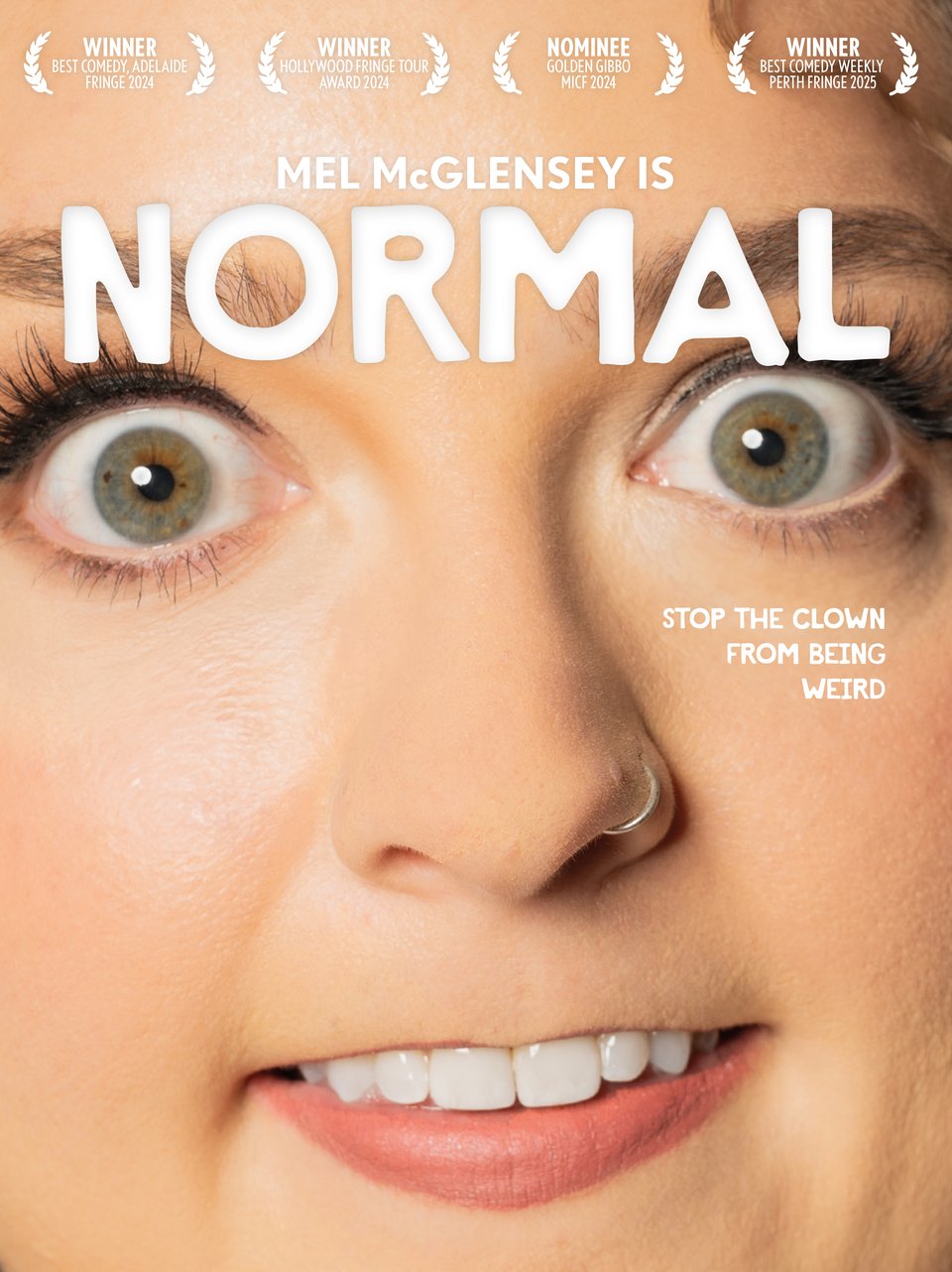 A bit about the new show: Mel McGlensey is NORMAL is a show where the audience gets to decide which bits Mel performs. They are encouraged, however, to only select the most normal bits as Mel must be normal for an entire hour of comedy if she is to escape the simulation. Can she do it? Not without your help!