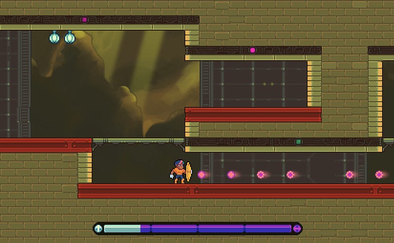 We decided to put the focus on the energy bar being something totally up to the player. You could play conservatively. Avoid getting hurt at all. You could play normally, and get hurt when you think the situation calls for it. Or be more risky and go full speed-boy with high dark, or captain moonjump with high light energy.
