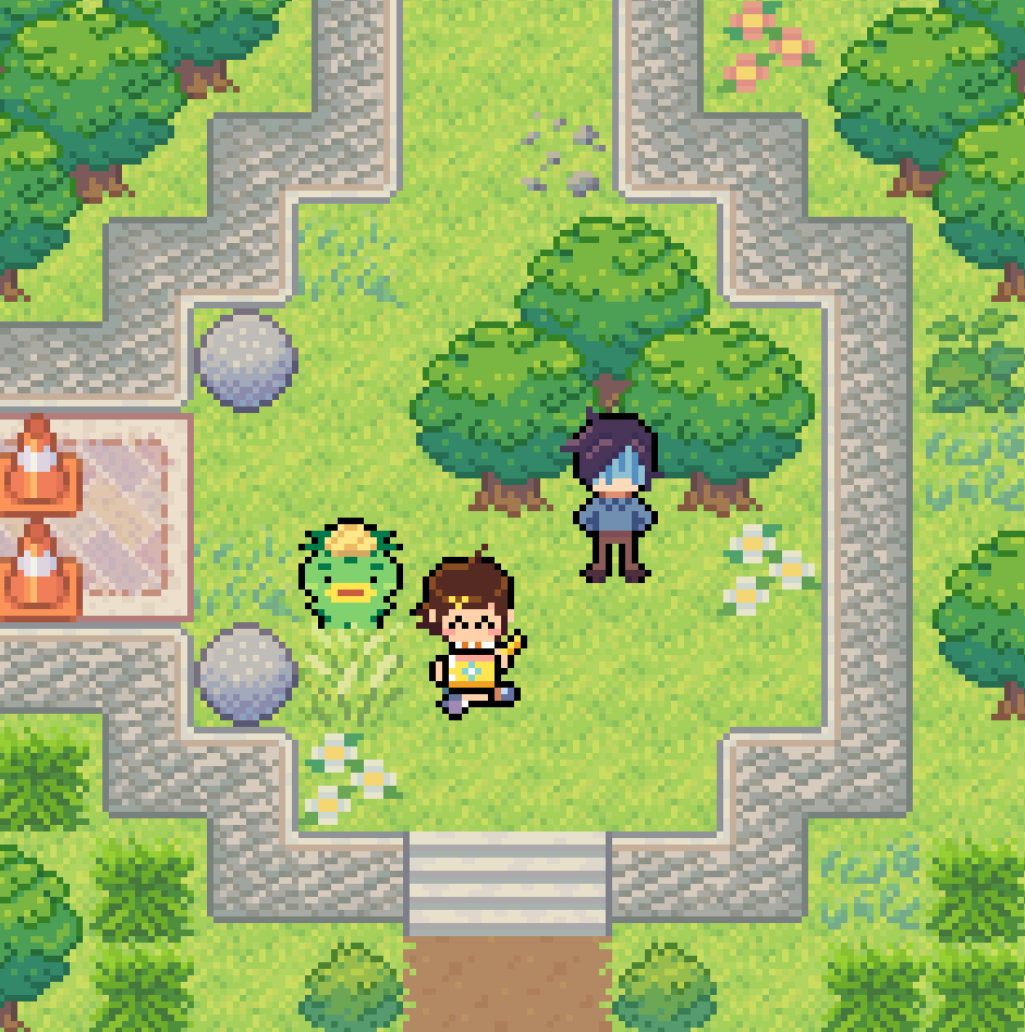 With the art, mogumu has a ton of experience as a professional illustrator, drawing on all sorts of influences, in particular, the art and characters of games like the unique cartoon style of Maple Story, the Harvest Moon series (especially the character spritework done in Mineral Town), Tomodachi Life and the playful emotions of Hamtaro games - all of which is felt most powerfully in her ability to come up with unique character designs via sandy powder’s specs and descriptions.