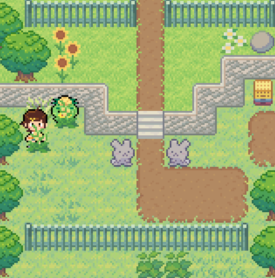 Because you can only move or bump, the minigames don’t need much tutorializing (contrast Mario Party where you have to learn the rules each time!) “Moving and Bumping” are so abstract that it’s relatively easy to convert a narrative idea (“find a four leaf clover in a patch”, “listen to toilet pipes”) into a minigame. This helps the games organically fit into a mostly exploration/reading-focused game.