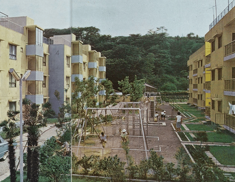 This area was inspired by the kinds of children’s parks you often find in danchis, like the photos below: