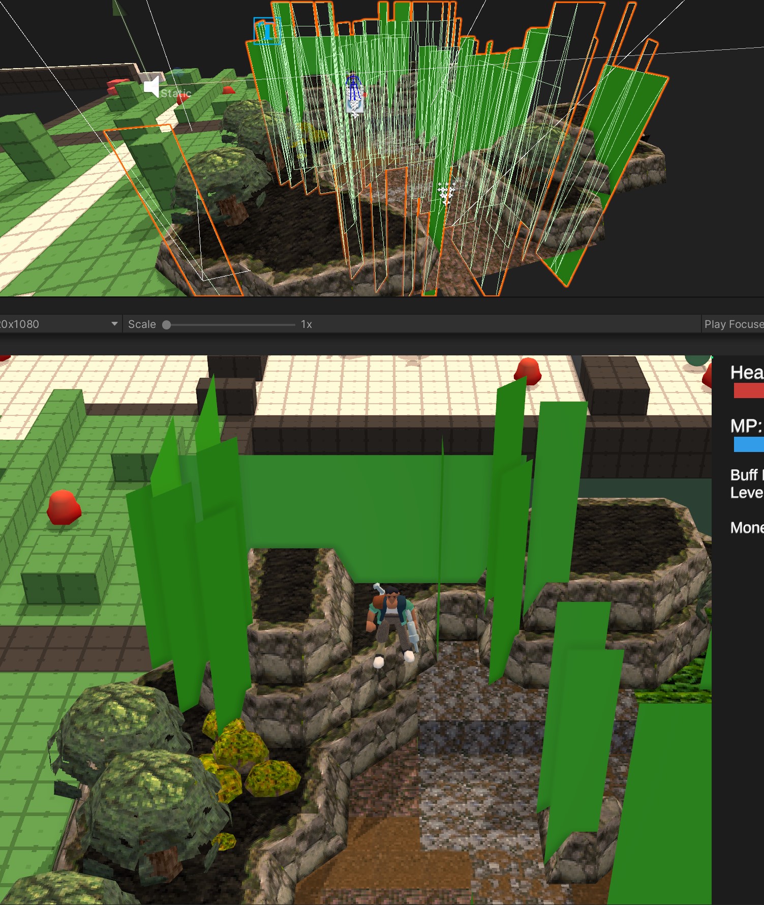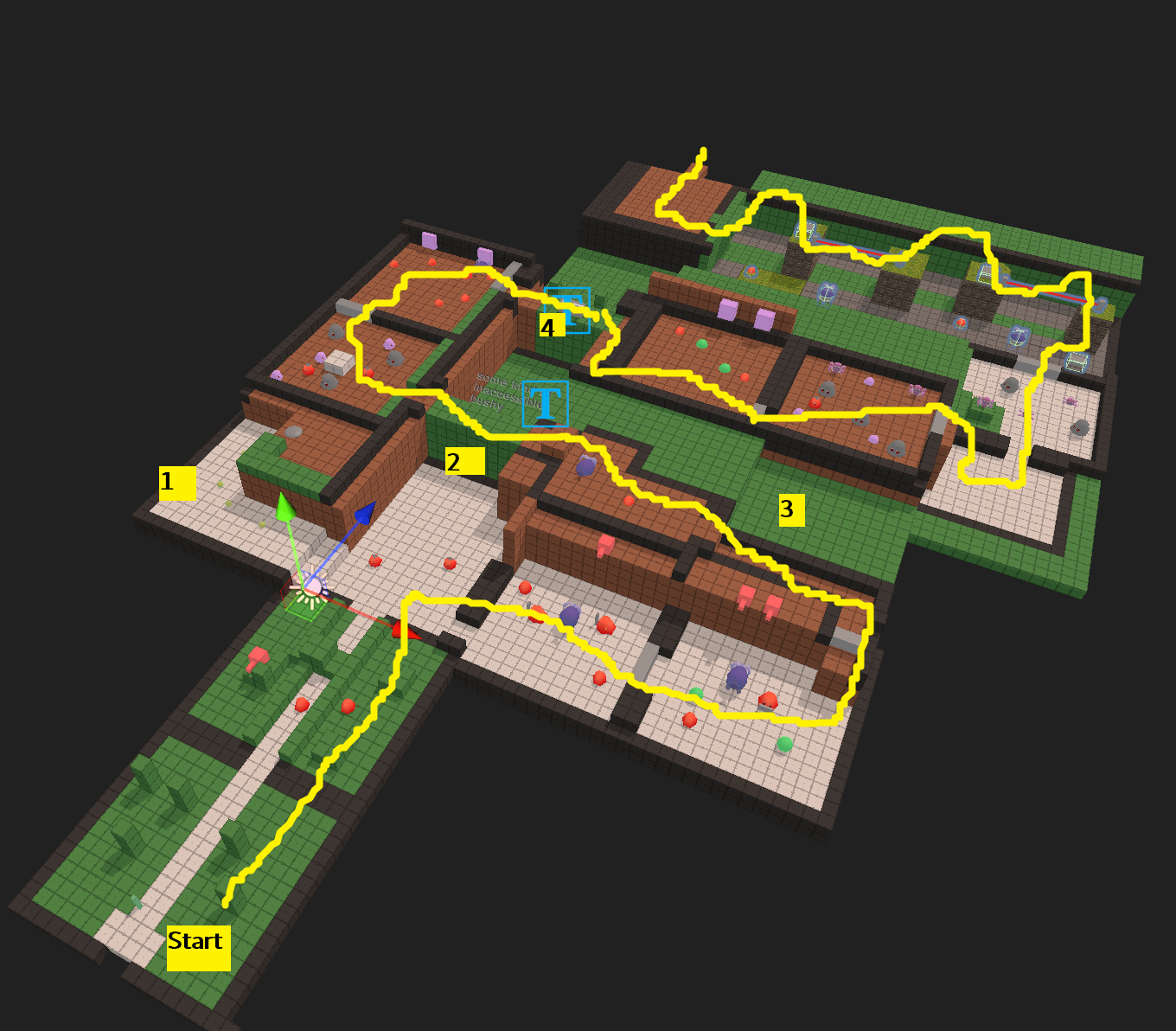 Above is a view of the editor after auto-generating invisible walls from certain edge cubes that determine where the player can and cannot go. I think the image is an of an early buggy version, though.