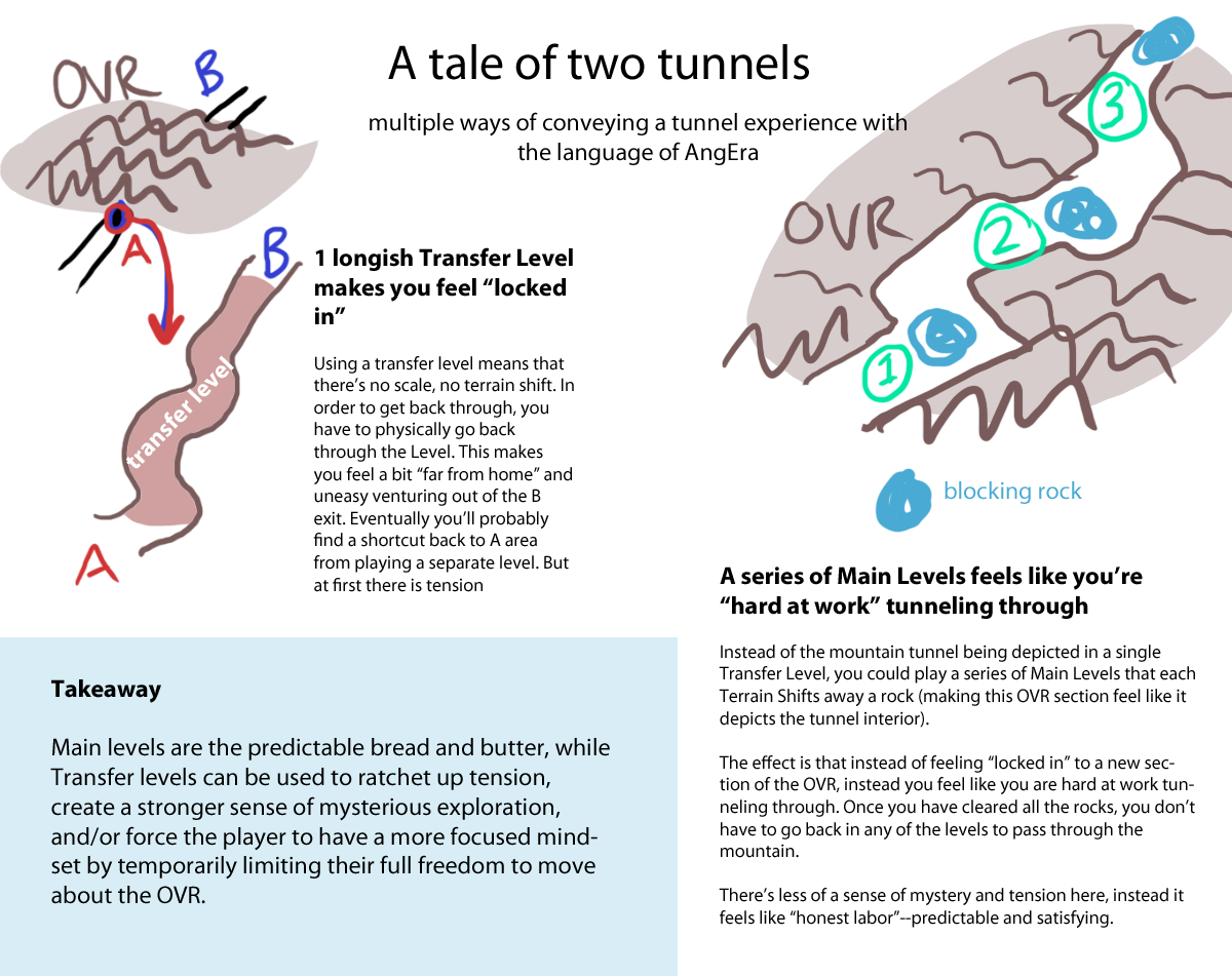 Around this time - owing to the progress we made with playtesting, world map progress - we discussed and then Marina put together some useful illustrations for the general design direction of levels.