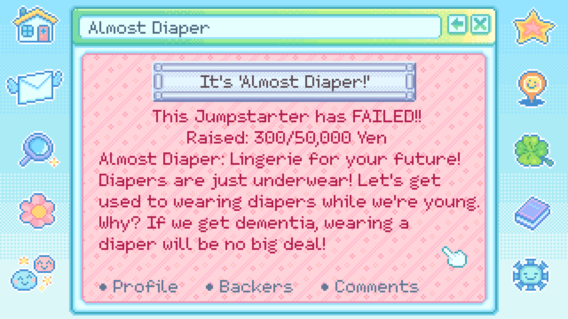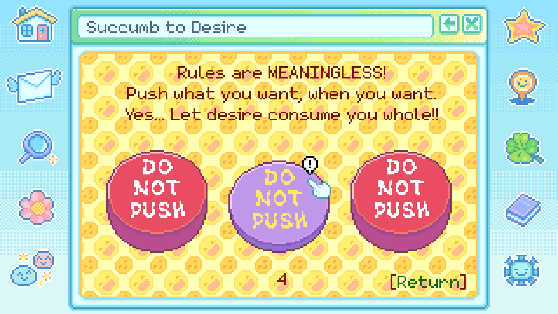 Search keywords to find your neighbor’s personal webpages, and learn their quirks and desires. The info you find may help with festival preparations. You might find a quirky minigame here or there, too!