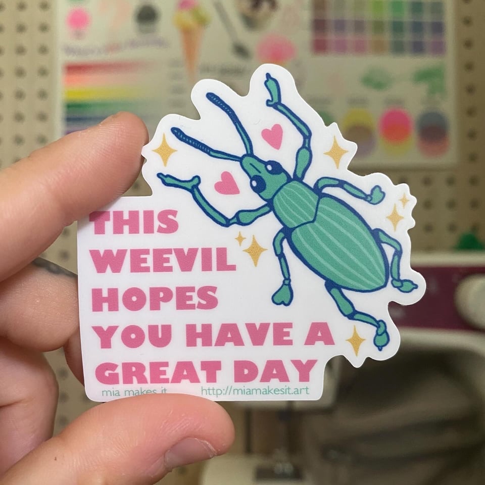 Weevil stickers out now! $3.50 for one or $5.00 for 2!! The more u buy the bigger the discount $$$