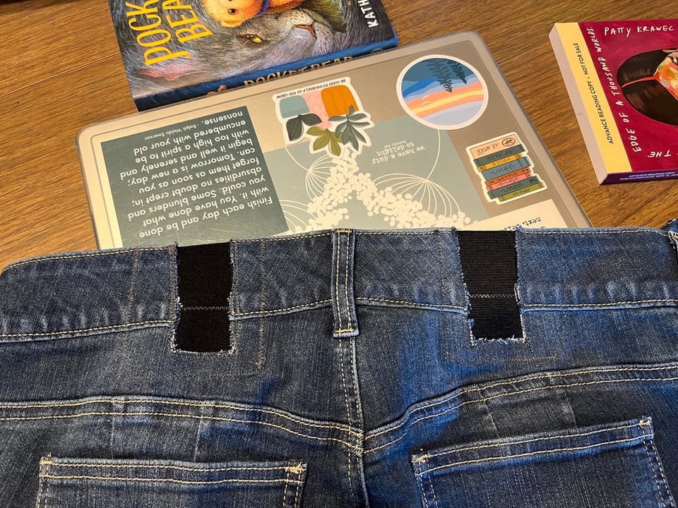 Last weekend I added elastic to the back of a waistband of a pair of favorite jeans that were just a bit too tight for comfort, and now, as my daughter’s girlfriend stated, “they’re full squat jeans”. Huzzah!