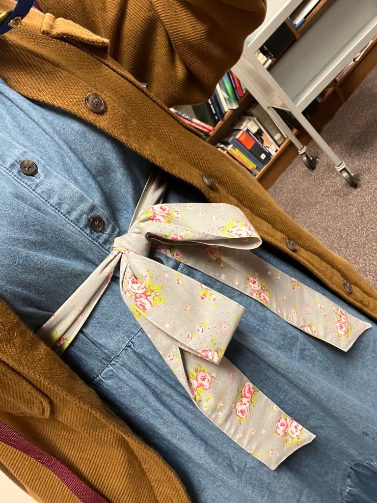 I was also feeling the need for a different sash belt to wear with my favorite denim dress, so I whipped one up on Tuesday morning before work. I love that something like this makes it feel like a whole new outfit, and most importantly, it let me be creative for a bit before heading to work for the day.