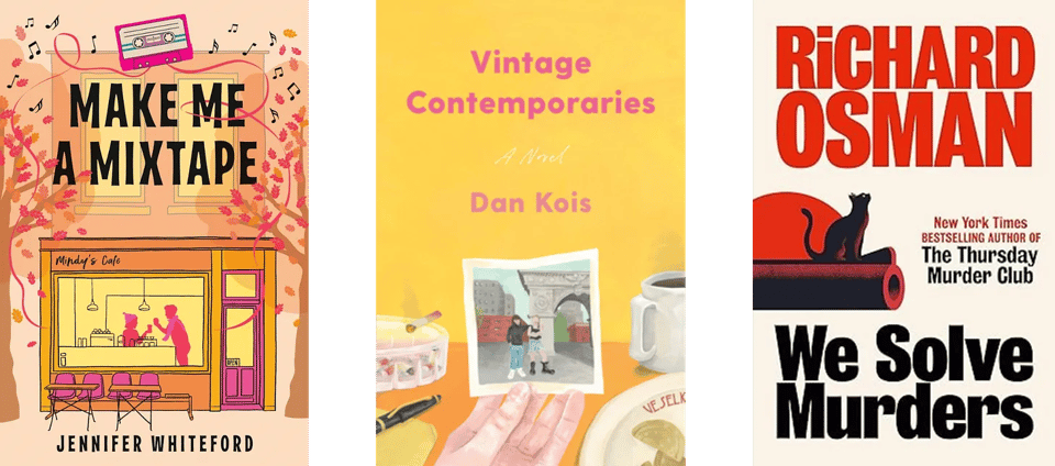 The first two books here are just perfectly complementary! The covers, yes, but also the NYC locations and stories involving long lost friendships newly resurrected. I listened to Make Me a Mixtape the day before, and on the drive to Milwaukee, and was reading Vintage Contemporaries in print simultaneously. We Solve Murders was the perfect audiobook to keep me hooked on my (painful) drive home.