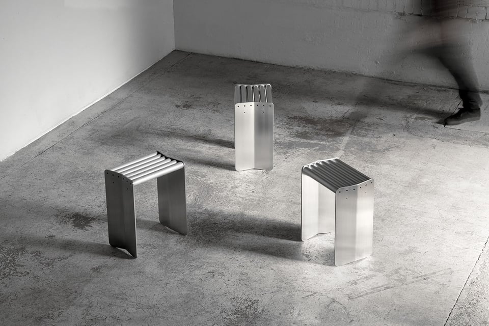 Made by Montreal-based industrial designer Andrew Ferrier, 5052 is a minimal seating system made up of a single set of components that can create multiple configurations. By rearranging the parts of the stool during assembly, the shape is inverted allowing you to nest the stools into a variety of patterns to suit a given space.