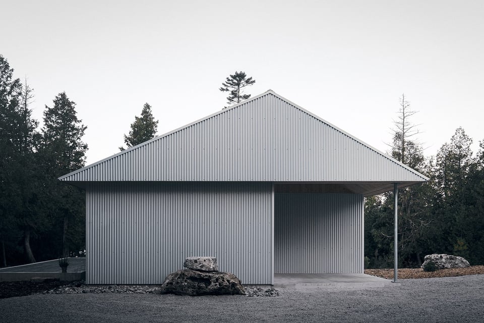 Located on the Bruce Peninsula a few hours north of Toronto, the design by StudioAC began with two fixations; one having the house sited true to a NSEW to take advantage of the solar path throughout the day, the view to the water, and to avoid disturbing as much of the natural habitat as possible. The second fixation was to have the roofscape act as a device to shape light, levels of intimacy and vantage points to the treetops, water, and sky beyond.