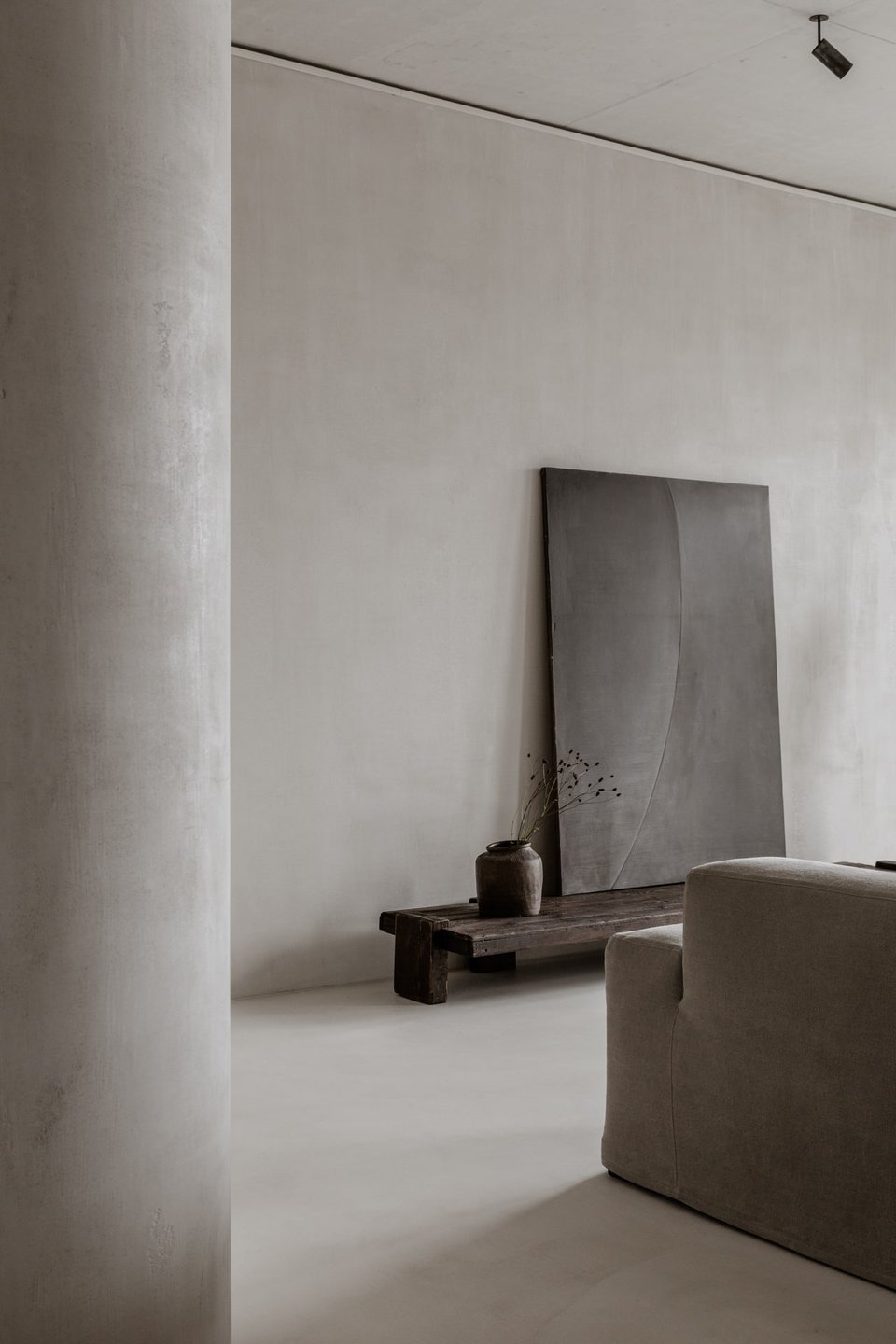 Located in Berlin, Germany this penthouse apartment designed by interior designer Annabell Kutucu features a perfect combination of textured walls, exposed concrete, and selected art pieces in order to create a minimalistic interior that's infused with a great sense of calm.