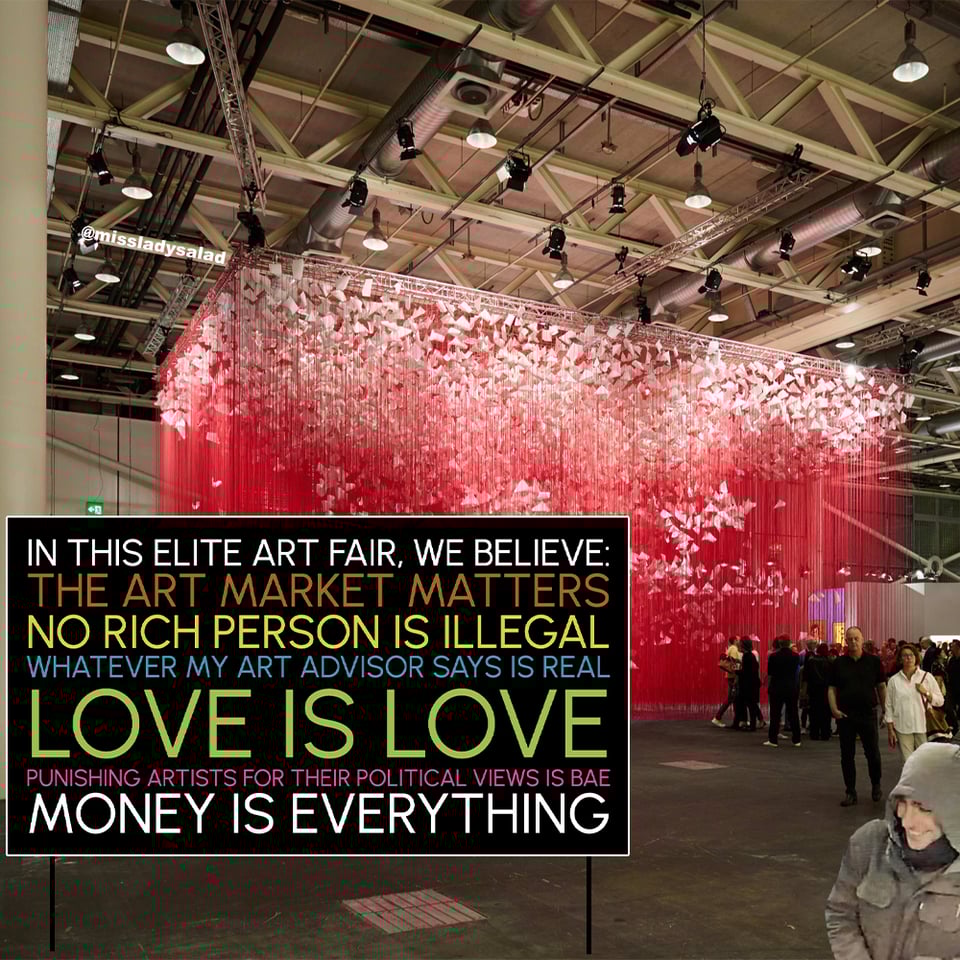 Many lack enough arts literacy to know how vile the industry is, that the impactful pieces they love might actually be owned by vile racists and classists. That the art market is deeply tied to zionism and gentrification and disparity. It’s an exploitative place. And at the end of the day something needs to be on the wall because someone needs to buy it so someone can make some money. And it’s usually not the artist.